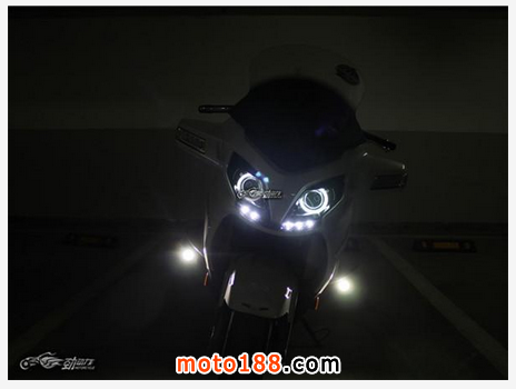 類似寶馬汽車的“天使眼”可以與示寬燈同時點(diǎn)亮,而射燈則是單獨(dú)的控制開關(guān),改裝后很難分辨出這是一輛650TR了。