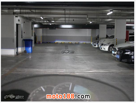 大燈和射燈同時點(diǎn)亮,此刻地下車庫猶如白晝。