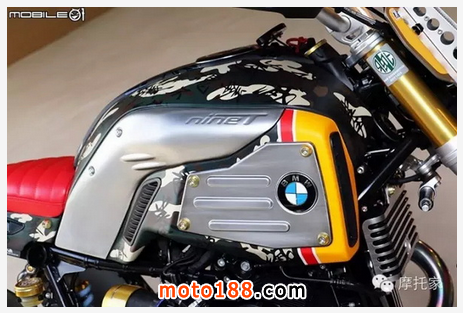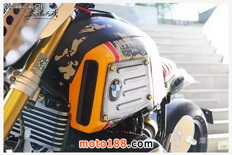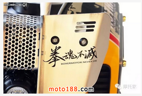 ‘拳魂不滅’中文字樣與底下的英文‘BOXERMOTOR NEVER DIE’是這臺車的主題,R-nineT 采用水平對臥空油冷引擎又被稱為拳擊手引擎,所以這臺車除了是一種 BMW 特有引擎的精神傳遞外,透過這串主題向 BMW 經典引擎致敬。