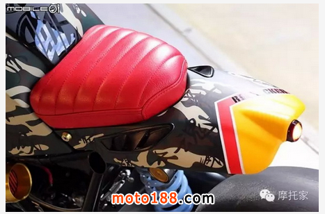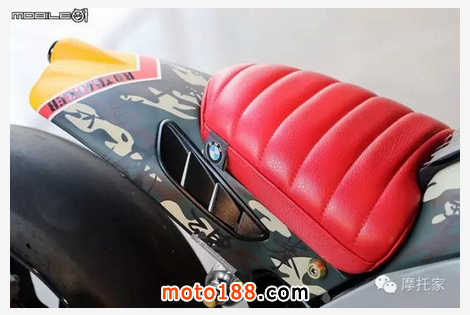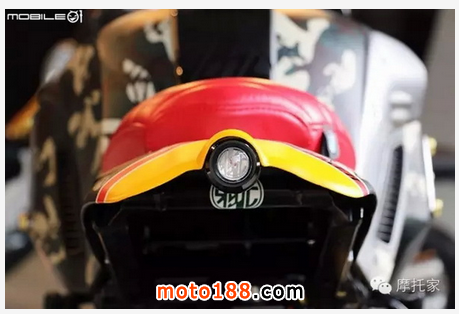 油箱中央處還可以看到許多由 DAKAR 設計的 R90T 圓型徽章,讓 R-nineT 本質更明顯一些;座位部分也是采用原廠制品,來自于 R-nineT 的后坐墊重新包復,并搭配短車尾,讓造型更簡潔有力。