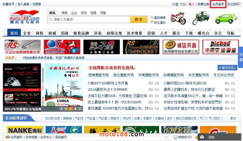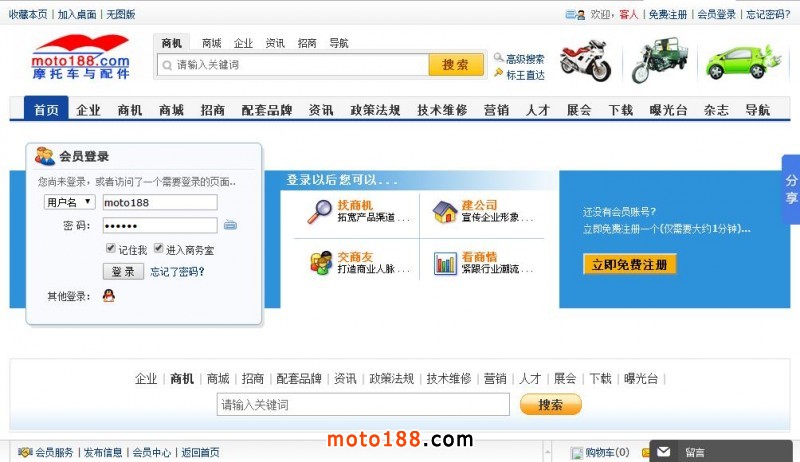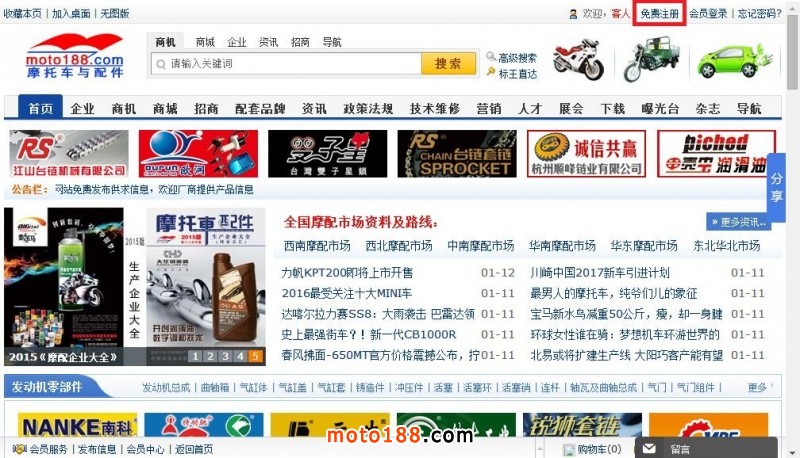 1.點擊打開moto188 http://www.zjsoxnet.com/ 點擊右上角免費注冊,或者下拉至黃色彩塊部分進行注冊