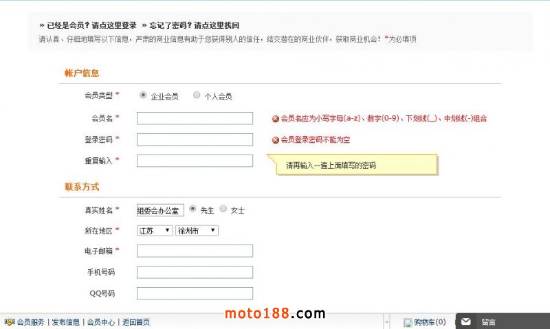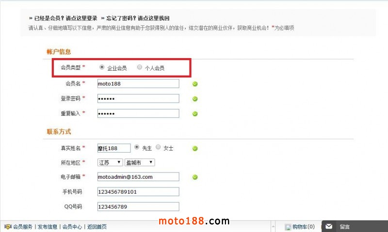 2.選擇企業會員或是個人會員,填寫您的注冊信息