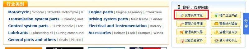 9.登陸成功后,您可通過下拉至黃色彩塊部分,點擊發布供求信息,進行供求信息發布