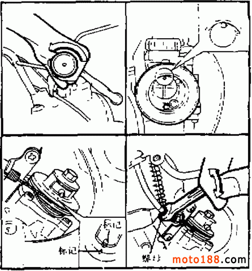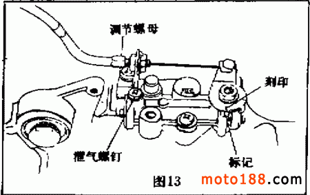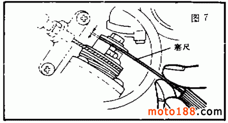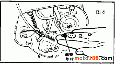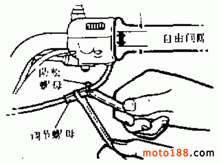 首先調(diào)整油門(mén)鋼索的自由間隙,其調(diào)整方法與 DX100 型摩托車相同。然后再做以下檢查調(diào)整。