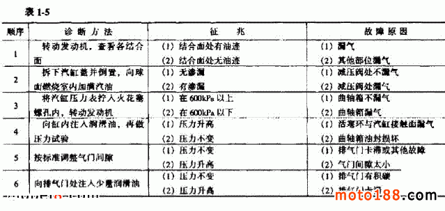 汽缸壓縮壓力不足的診斷順序見表 1-5 所示。