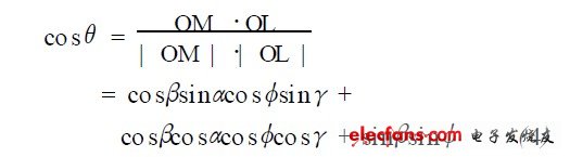 由圖1 可知,θ也可以表示為L ED 光軸對應的向量OL 與向量OM 的夾角,則