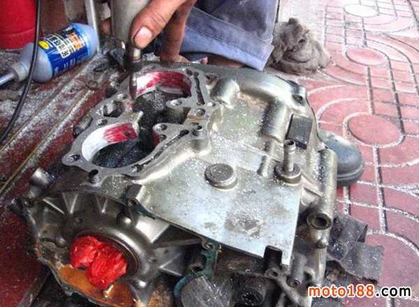 因今次氣缸直徑要增大10mm,原發動機兩孔口不夠大,要加工擴大。