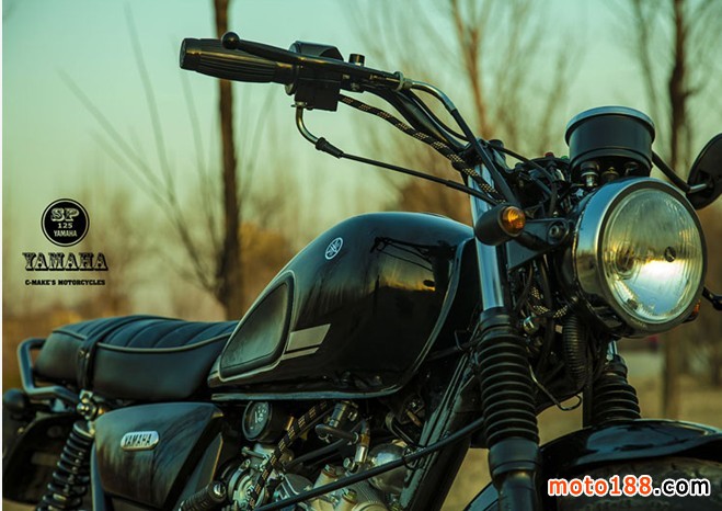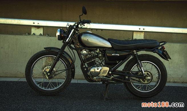 雅馬哈天俊有農村車的基礎,低調的選擇黑色。作為此車的規劃師,覺得黑色款是最適合這種傳統設計的車型。車到手不滿意的地方很多,目標就是折騰至滿意,有今天的這個樣子完全依賴了淘寶上的配件、汽配城的皮具加工、五金店的各種螺絲、樓下不銹鋼加工的小工,還有汽車鈑金噴漆的作坊,自己僅僅完成了外觀的設計和組合,也包括一些小件的改進制作:鋁制車后內擋泥板、鐵制儀表架和燈架、排氣管尾嘴、鋁制過濾瓶等等。因工作繁忙,工具欠缺,從11月到現在改造歷時2個月,之后騎行1年過程中又陸陸續續進行了部分改進。此帖記錄了我對天俊進行的歷時1年多的改進過程,如果有新的改進還會陸續更新與摩友分享。