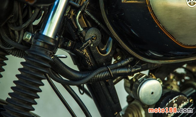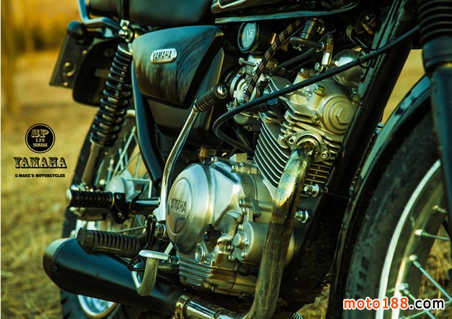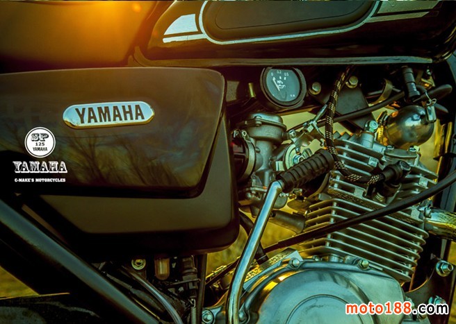 換成SR250油箱,調整了自制的小鏈邊蓋,更換車把和車把開關,