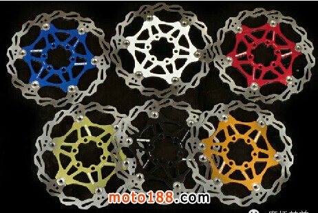 所謂的碟盤就是碟剎卡鉗夾住的那一塊鐵板,一般簡易的設計就是將一塊碟盤固定在輪框之上,并與輪框同步旋轉,當卡鉗夾緊碟盤時將使碟盤減速,進而使輪胎減速,這就是碟式剎車的基本原理。但問題出現了,卡鉗是跨越在碟盤兩側的,當卡鉗夾緊時,左右兩側的夾緊行程是否相同呢,如果不同的話,碟盤應該會歪向一邊才對。而且剎車皮與碟盤磨擦時會生熱,碟盤受熱后理當會膨脹,它會向哪里膨脹呢?其實要解決以上兩個問題非常的簡單,只要碟盤會上下左右移動就一切OK了,這就是浮動式碟盤的基本原理。