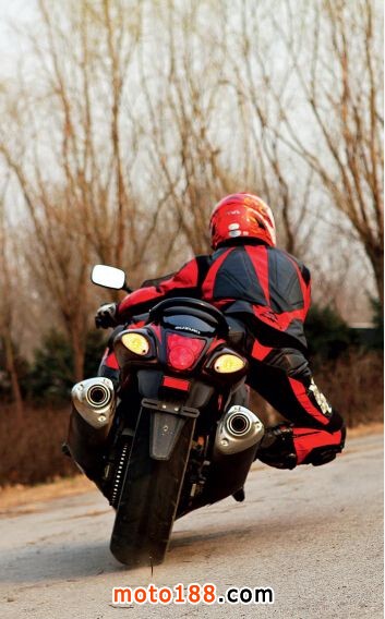 此外,營造出如直線行駛般的穩定狀態以及過彎動作間的“落差”也是重點。過彎時,首先要做的動作就是減速,盡早做出制動動作。這是因為無限量級跑車的自重驚人,因此它的減速要比其它車型花費的時間更多。如果減速不到位,車輛在入彎之后仍然會殘留強大的慣性,從而嚴重影響騎士的穩定駕駛。接下來,不要忘記在制動的同時,做出向彎道內側方向挪腰的動作。無限量級跑車和公升級跑車的后輪同樣很粗,所以當車身傾斜時,輪胎著地點的移動量很大,而位于坐墊中間的重心移動到車輛內側會比較慢。不過,受到油箱容量和車把寬度的影響,騎士的身體很難做出大幅滑動,而且容易出現“四肢張開”的怪異姿勢,變成完全的橫向移動,這點務必要小心。在這樣的狀態下盡早完成減速,然后輕點前制動以穩定車身,當到達轉向點時開始釋放制動。如此一來,車身就會變得不穩定,前輪就會開始傾倒了。無限量級跑車由于車重的因素,所以車身的穩定與否會因為制動釋放而產生大量落差,車輛的轉向也會改變,這也是與公升級跑車不同的一種駕駛樂趣所在。還有一點要注意的是進彎前到出完后的發動機轉速變化。無限量級跑車由于搭載大排量發動機,因此發動機曲軸比公升級跑車要重,即使是同樣轉速下,無限量級跑車的“陀螺效應”也會比公升級跑車來得強,也由于這樣的的特點,無限量級跑車的發動機轉速越高,發動機的“陀螺效應”也會越高,車身也因此更加穩定,相對而言車也更難摔倒。出彎轉速過高時,如果再給一點油門,后輪就會因為動力輸出太大而產生“滑胎”現象,一不注意就會變成給著油門過彎,導致無法靈活使用車輛的向心力。其實,無限量級跑車在低轉速下,很少會發生發動機爆震,所以過彎時還是將轉速降低比較好。駕駛無限量級跑車,騎士除了要具備過硬的駕駛技術,還要具備良好的心理條件和駕駛素質,也就是要“膽大心細”。只有當你足夠了解這輛車時,才能充分體驗到它的駕駛樂趣,不論什么車型都是如此。時下,越來越多的騎士加入到大排量車乃至無限量級車型的陣營之中。要先學會掌握馭車之道,而不是一味莽撞地拼速度,也不是因車大車沉而緊張害怕。相信這篇文章可以讓你放下包袱,實現輕松駕馭,愛上無限量級跑車。