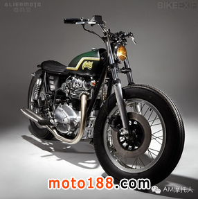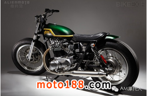 但最值得一提的還是要屬那個拉長版的油箱,取自Yamaha DT250的油箱被加長約4英寸,這樣一來就和座椅一樣長,使得整體效果非常協調。看的出來,為了在激進、個性的改裝和合法上路之間找到一個平衡點,馬克確實頗費了一番心思。尤其是對于那些細節的掌控著實值得稱道。