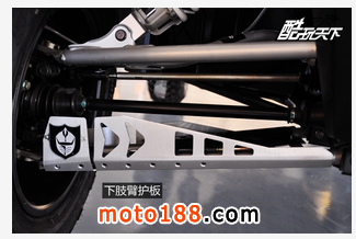 這個(gè)盾牌形狀上面帶一個(gè)護(hù)甲頭盔標(biāo)志的就是Pro Armor支臂護(hù)板,Pro Armor譯為盔甲,顧名思義,也能猜到這是一款起到保護(hù)作用的防具,保護(hù)的就是全地形車(chē)上最脆弱、最易受傷的下肢臂。因?yàn)槿匦诬?chē)多出現(xiàn)在沙漠、碎石路段,對(duì)于下肢臂的傷害是時(shí)常的且難以避免的,由此就體現(xiàn)了一款肢臂護(hù)板的重要作用。而這款PRO ARMOR護(hù)板是專(zhuān)為北極星剃刀1000打造的,帶個(gè)性標(biāo)志的護(hù)板不僅增強(qiáng)了外觀上的美觀,鋁合金的材質(zhì)也能夠最大程度的保證下肢臂的安全。