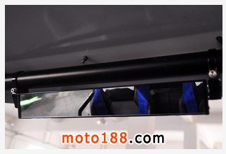 藍(lán)色的防沖撞后視鏡,看質(zhì)感就能感受到它堅(jiān)硬的態(tài)度,別看電光藍(lán)用在這一個(gè)小小的細(xì)節(jié)上,也有如畫(huà)龍點(diǎn)睛一般,使整車(chē)的外觀看上去更加靚麗。如果覺(jué)得這左右兩只小后視鏡不能滿足大視野的要求,車(chē)內(nèi)的廣角后視鏡便必不可缺了。沙漠行駛不像公路,沿著規(guī)劃好的直線一直向前,沙漠廣袤隨意馳騁,不知道從哪就會(huì)躥出一輛硬漢越野,為了避免沖撞的危險(xiǎn),廣后視鏡提供了大范圍的視野需求。