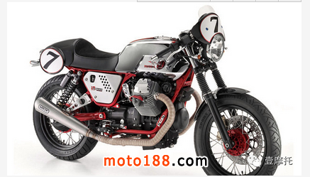 CAFE RACER DREAMS:是的這家來自西班牙的改裝廠就是這個名,但是卻帶著這輛v7走向了scrambler 風格,短小的精悍的車身,噴砂的輪轂亞光處理搭配豆胎,將電池盒移到了搖臂下,去掉邊板露出k&n空濾,排氣也針對大流量空濾定制,去掉了cafe的經典元素座包后改裝了后段車架換上平座,看起來是不是也別有一番風味?