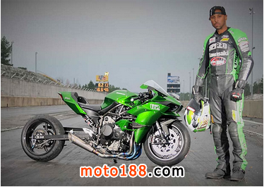 雖然KAWASAKI H2及H2R已接受預訂,但正式交到車主手上仍需要一段時間,然而現在已獲得廠方提供車輛并進行改裝的車主,肯定是非一般的車迷。獲得共11次直道加速賽(DRAG RACING)世界冠軍Rickey Gadson從1996年與KAWASAKI合作之今,他搶先一步取得的車輛是KAWASAKI特制的混合版H2,采用街道版200匹機械增壓引擎,配備了賽道版碳纖飛機翼的車頭,而Rickey Gadson的任務是把車輛改裝成直道加速賽戰車。