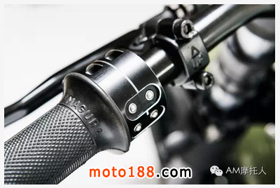 得益于Motogadget家的全套電子組件-m-Unit,m-Button控制組件,m-Lock無鑰匙啟動組件,m-Switch及鍍鉻的復(fù)古儀表的使用,使得車體非常簡潔。當(dāng)然,K&N空濾、Tarozzi頭燈、LED轉(zhuǎn)向燈剎車燈、新的mini電池組及新排氣等等都功不可沒,整體才營造出如此簡潔的視覺效果。而綠色白條紋的涂裝更是點睛之筆,優(yōu)雅范兒十足。