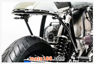 為了達(dá)到設(shè)計要求,R80的前減震降低了2.5英寸,同時更換了套筒內(nèi)的彈簧,后減震選用的是Wilbers家的Ecoline系列產(chǎn)品,前17后18寸的輪轂選用BMW原廠的交叉輻條輪轂,搭配Avon Roadrider AM26輪胎,兼顧鋪裝路和砂石路的抓地性能。另外,Brembo PS13卡鉗和Stahlflex剎車線的加持更是使得性能飆升。