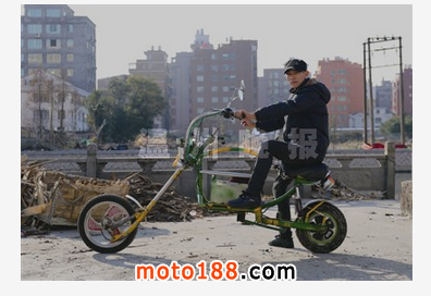 雖然這輛山寨哈雷大部分零件是廢舊材料,但最基本車底構架改裝自破舊電瓶車。