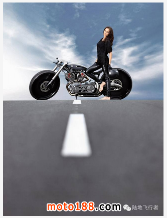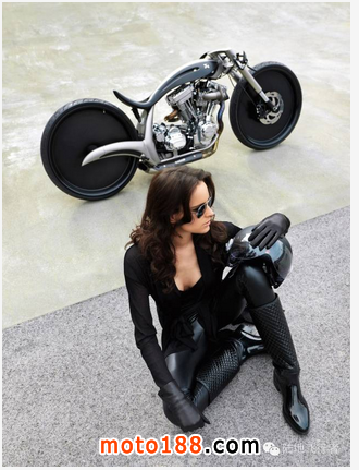 該款搭載了"S&S"公司生產的V型雙缸發(fā)動機,排量為1,524cc,以及由復合材料制成的輪轂和巨大的剎車盤,其整體車架及尾部車體皆有金屬板沖壓而成,包裹著龐大的變異排氣管,也就是說覆蓋著尾輪的整個車尾和排氣管融為了一體。