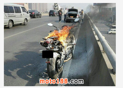 摩托車油路滲漏,容易引發(fā)車輛自燃,是件絕對不不容忽視的問題。上圖的黃龍600自燃問題,起始起火點(diǎn)位置并不是油箱附近,而是在后座下部(電瓶等電路位置所在),本圖意在提醒廣大摩友油箱滲漏問題,絕對不可以小視。