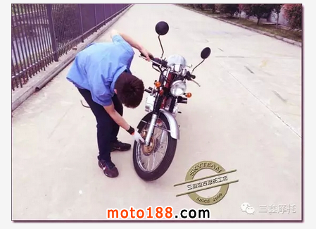 一、出車前,應(yīng)仔細(xì)認(rèn)真檢查摩托車各部分運(yùn)轉(zhuǎn)情況,這雖然是老生常談,但的確十分必要。尤其應(yīng)仔細(xì)檢查摩托車的輪胎胎壓情況。