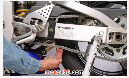 鏈條是摩托車重要的動力傳導裝置,如果鏈條太松,會降低發動機的動力傳導效率。太緊又會加劇鏈條及鏈輪的磨損,甚至有可能導致后輪的突然鎖死,正確調整好鏈條松緊很重要,一般在鏈盒部位都有標注上下活動區間,請注意觀察。