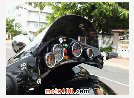 摩托車上安裝了與古典汽車一樣的四個儀表,分別是車速表、發動機轉速表、油量表、水溫表。