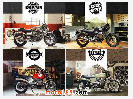 MOTO GUZZI推薦四種改裝風格,這四種風格獨特的V7改裝套件,都將讓V7成為焦點。MOTO GUZZI的所有配件均可任意搭配組合,單獨購買,滿足車主最瘋狂的想象力與創造力。