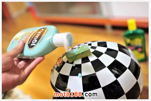 上面所說的各種東西基本上在汽車配件城都能買到,價格都不太貴!加上只要你會殺價,估計一兩百以內都能搞定。首先你可以用小海綿滴上幾滴液態蠟,然后完整地涂抹在頭盔表層,等約兩分鐘,當液態蠟呈現半干的時候,再接著用吸水綿布,將上面的蠟痕全數均勻地推干凈。這邊切記吸水綿布是保持干燥的狀態,不要有任何的水分!
