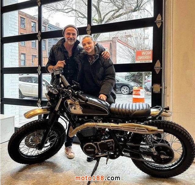 這臺黑色的咖啡車型是由一臺2015年的雅馬哈SR400改裝而來,以斜紋金線裝飾的油箱上,寫著13號的字樣,整臺車最精美的部分要屬這個單座的衍縫皮革座位,非常的精致。